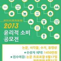 2013년 윤리적 소비 공모전, 줄여서 '윤소비', 다들 알고 계시죠? 공모전 시작 계절에 발맞추어 2013년 포스터와 웹포스터, 배너도 산뜻하게 바뀌었답니다. 포스터와 웹포스터, 배너는 필요하신 분들을 위해서 공개하고 있으니, 널리널리 가져다 쓰세요. 링크 주소는 공식 홈페이지(http://ethiconsumer.org)로 부탁드립니다.