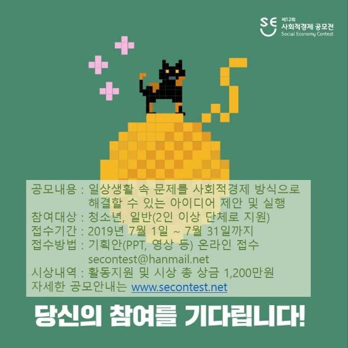 [공지] 2019 제 12회 사회적경제 공모전 안내 (0) | 2019.06.23 |