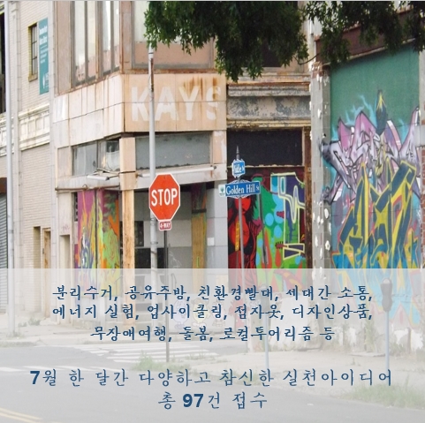 7월 한달 간 총 97건의 다양하고 참신한 실천아이디어가 접수되었습니다. #일상의_아이디어