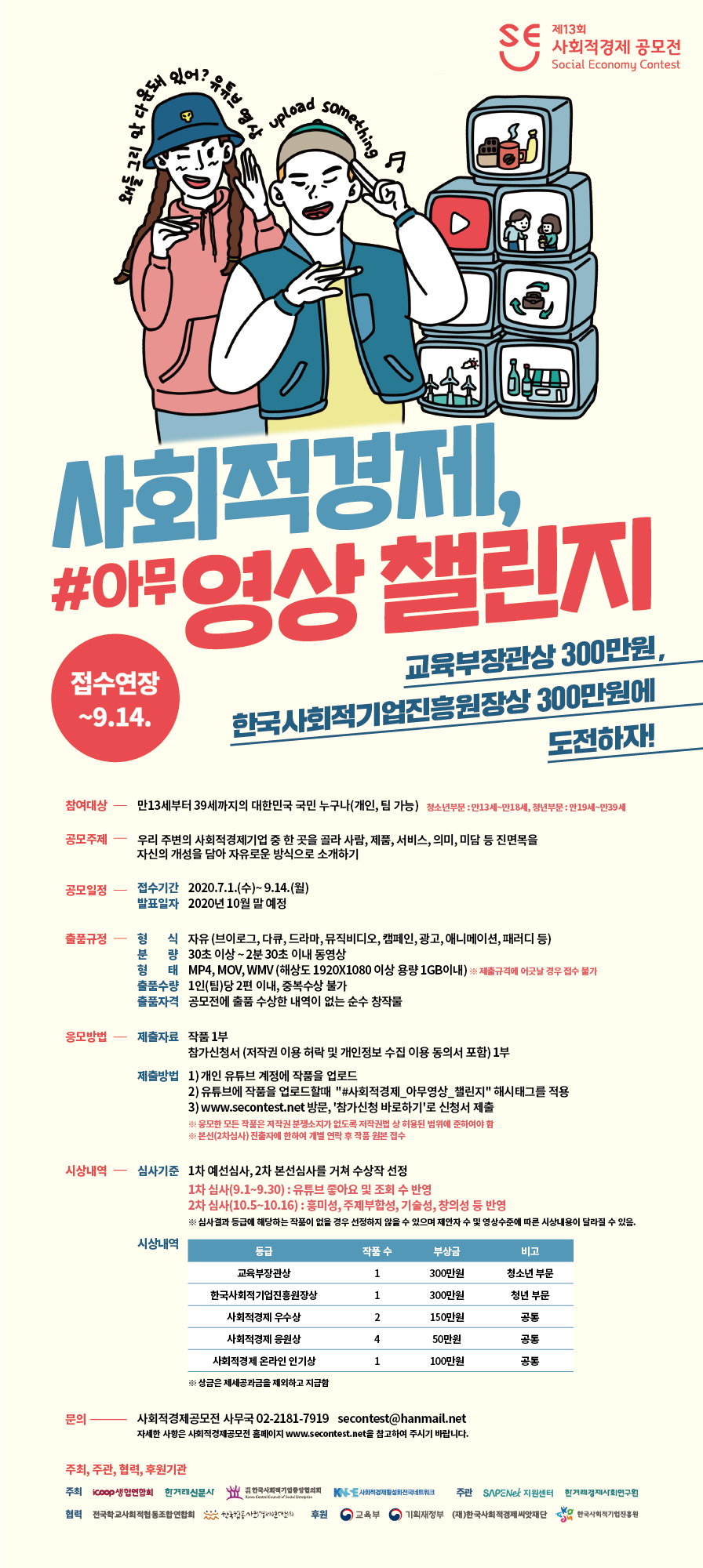 [접수연장] 사회적경제공모전 접수기한 2주 연장합니다. (0) | 2020.09.01 |